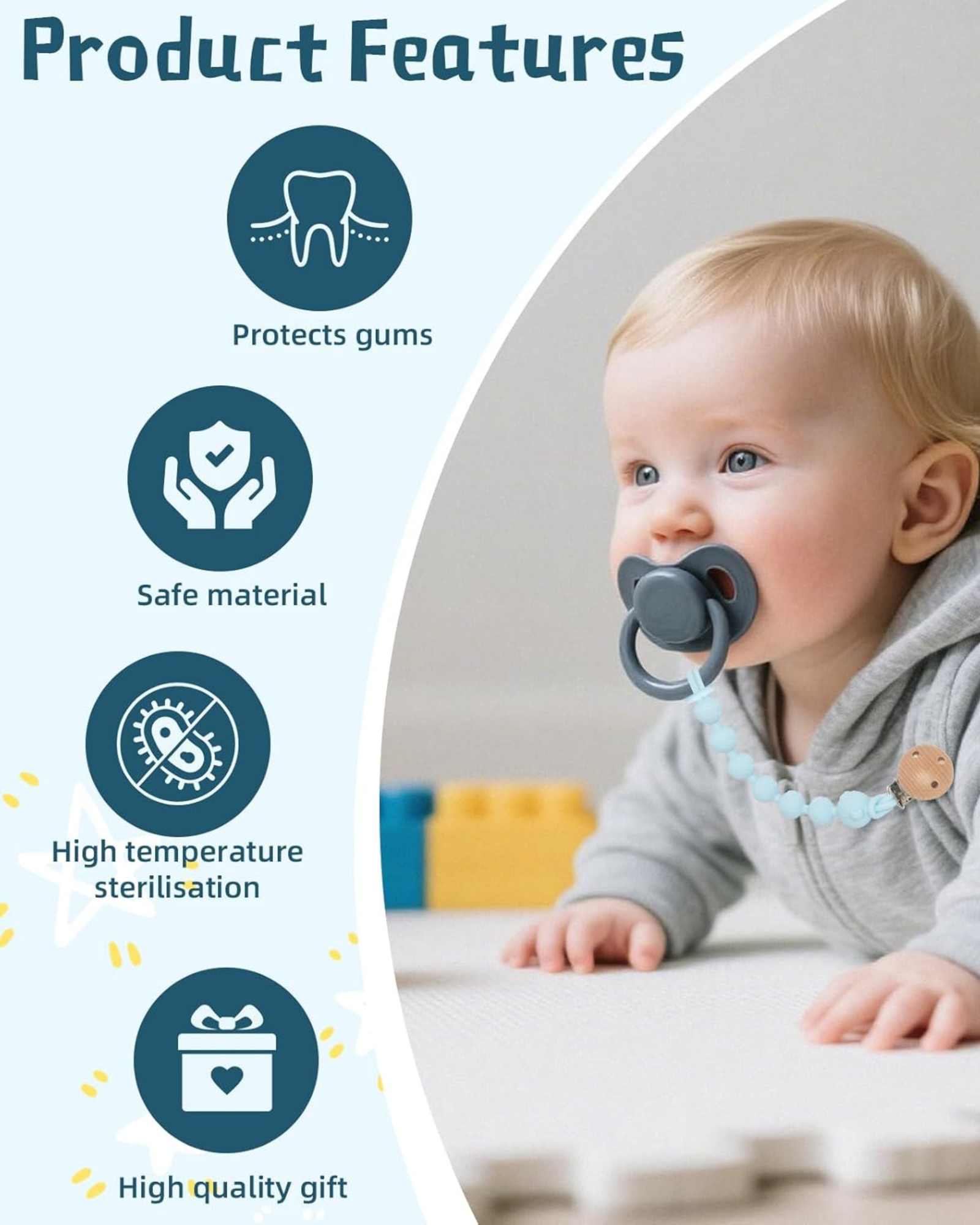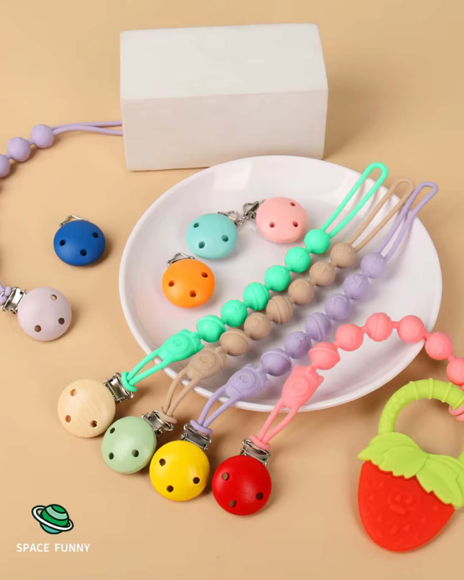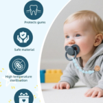 Accesorio práctico y funcional diseñado para mantener el chupete siempre limpio y al alcance del bebé.