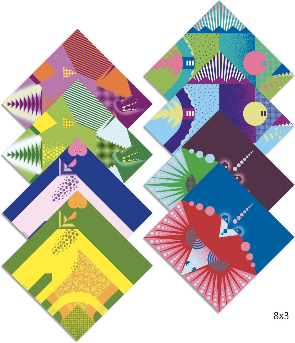 - 24 hojas impresas con reflejos fluorescentes (20 x 20 cm)