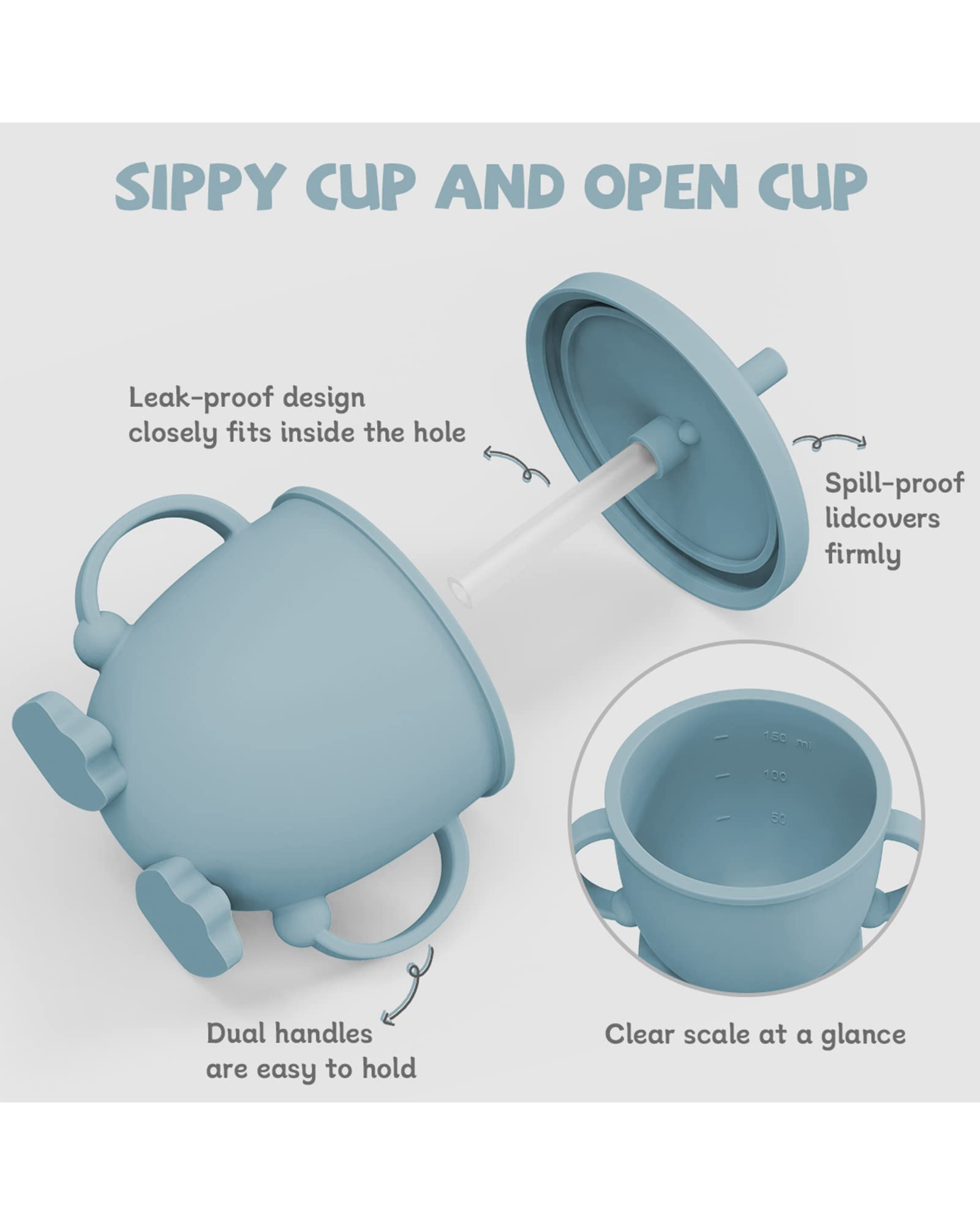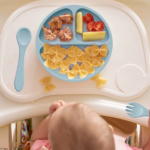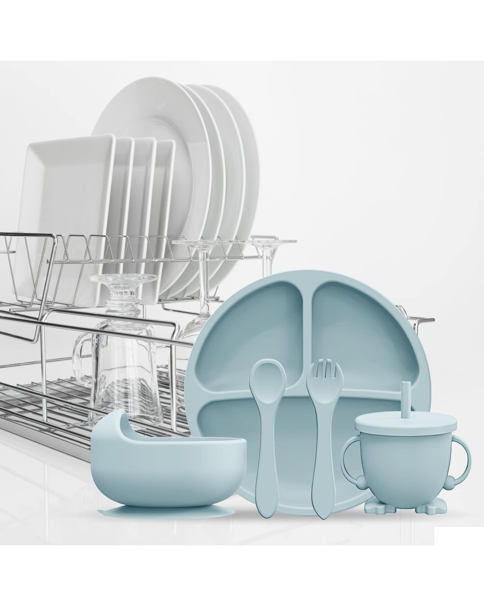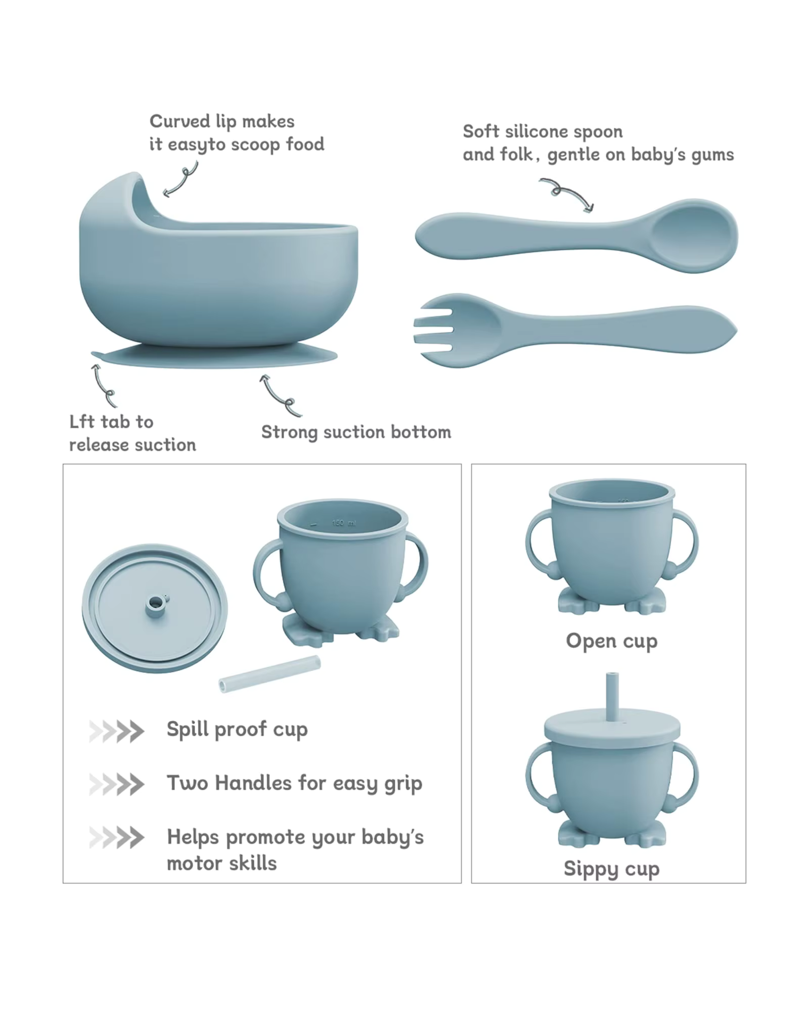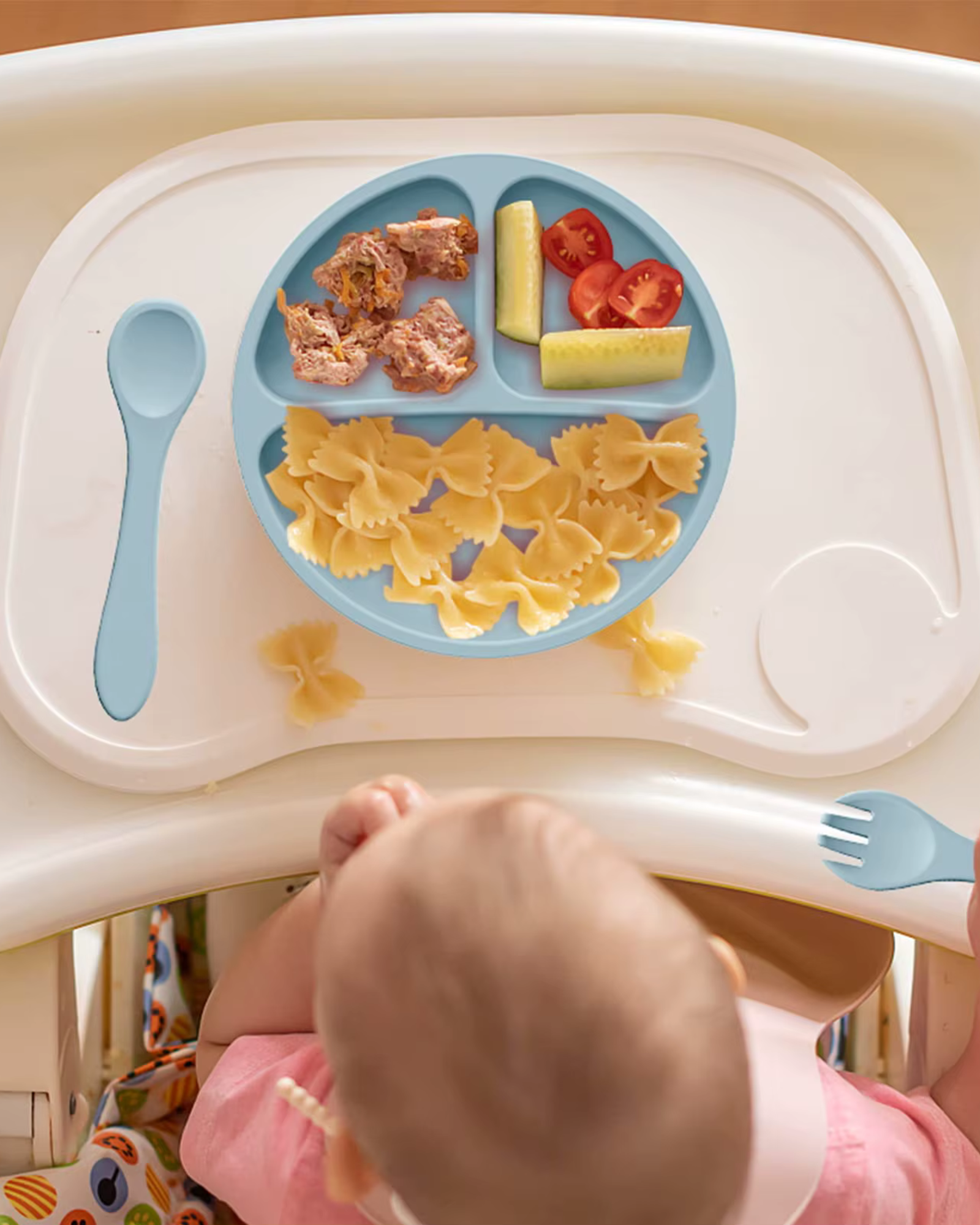 Fabricado en silicona flexible y resistente, este set ayuda a fomentar la autonomía y el desarrollo de la coordinación en la etapa de alimentación complementaria.