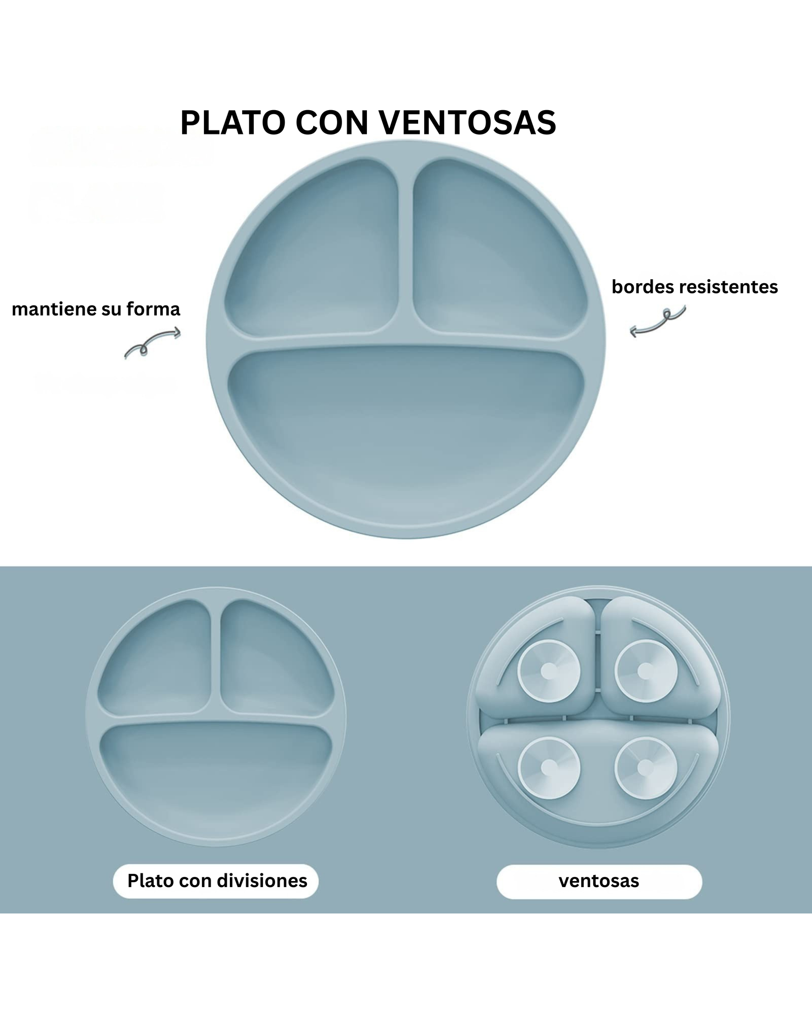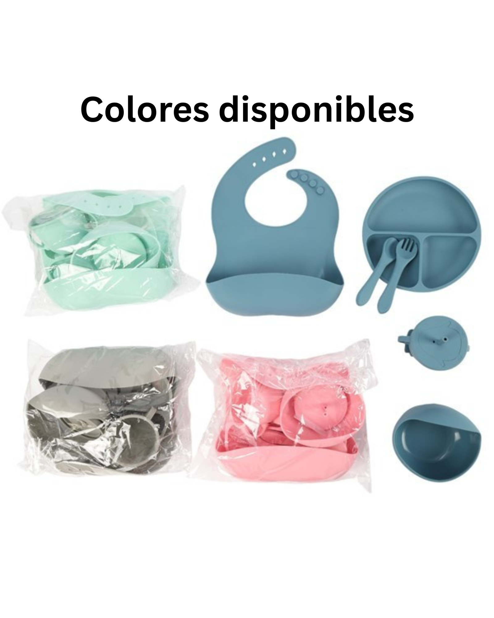 Un set completo y funcional diseñado para acompañar las primeras comidas del bebé de forma segura y práctica.