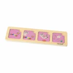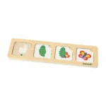 Un juego educativo de madera diseñado para que niños a partir de 3 años aprendan a comprender la cronología y el orden lógico de los acontecimientos.